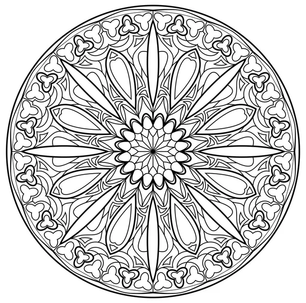 Página Con Dibujo En Blanco Y Negro De La Hermosa Ventana Gótica Medieval Con Vidrieras Y Rosas Para Colorear. Hoja De Trabajo Para Niños Y Adultos. Ilustraciones Vectoriales, Clip Art Vectorizado Libre