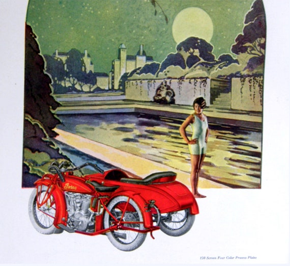 1927 Print Vintage Indian Motorcycle Ad Flapper In Twilight Etsy