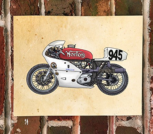 Amazon Com Killerbeemoto Limited Print Of A Vintage Norton Racing Motorcycle Color Drawing Handmade