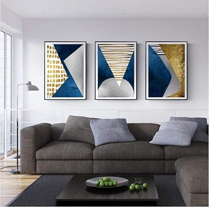Moderne Abstrait Bleu Or Lune Peinture Géométrie Montagne Toile Affiche Art Mur Photo pour Salon 40x60 cm x 3 sans cadre: Amazon.fr: Cuisine & Maison